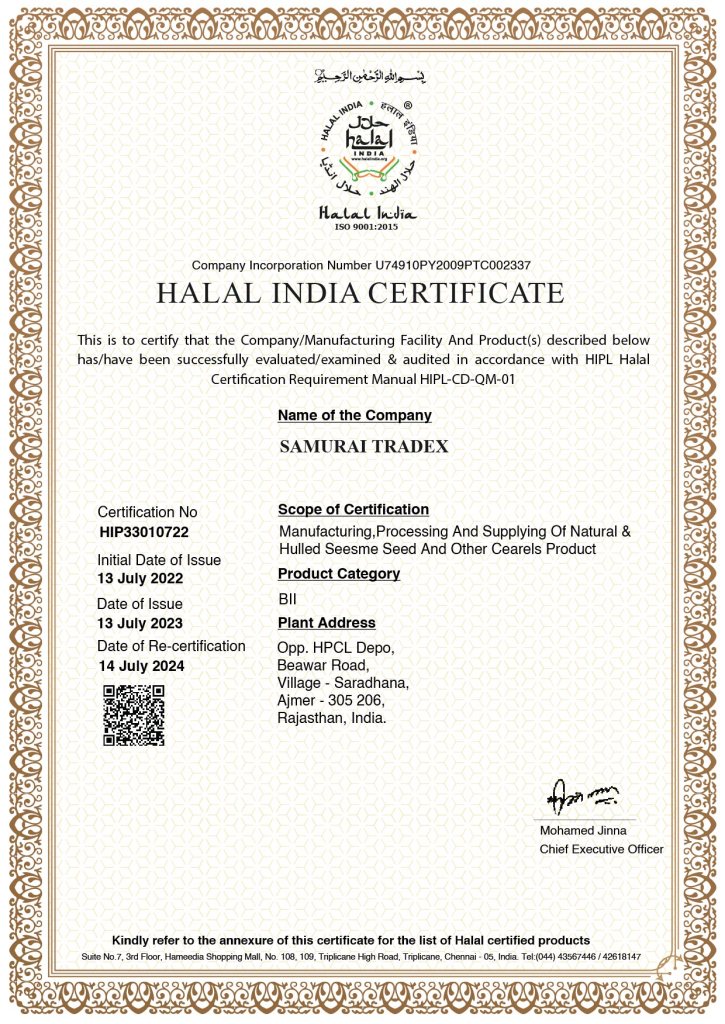 At Samurai Tradex, we take pride in our rich heritage and expertise as a leading manufacturer and exporter of premium quality sesame seeds. With a legacy spanning over a decade, we have been consistently providing top-notch sesame seeds to our valued clients worldwide. Established in 2019 in the vibrant city of Ajmer, Rajasthan, India, Samurai Tradex has earned a stellar reputation for its unwavering commitment to quality, authenticity, and customer satisfaction.